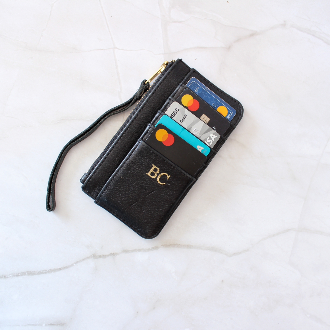 Tarjetero negro. Esta pieza está elaborada en 100% piel genuina, que puede conservar marcas naturales, lo cual garantiza su autenticidad.